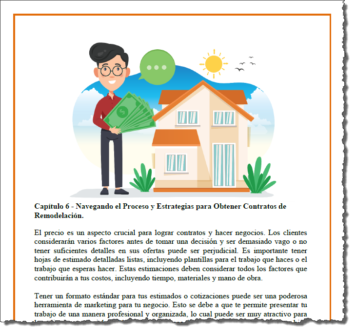 Este libro es la guía esencial para iniciar tu propio negocio de remodelación REO. Aprende como convertirte en contratista REO para los bancos en USA. Lo podrás descargar en un práctico formato PDF, compatible con todos los dispositivos, incluidos iPhone, Android, tabletas y PC, lo que te permite acceder a él en cualquier momento y lugar.